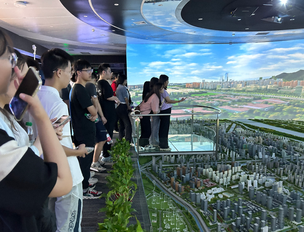 园区内现代建筑群错落有致,每一砖一瓦都蕴含着创新和科技的基因。bti必一体育(b-sports)科技IT菁英暑期实训营的学员们怀揣着对科技的无限憧憬步入研创园展厅。展厅内部设计充满科技感,一块块巨大的模型和显示屏映入眼帘,生动展现了研创园的科技规划,以及从梦想走向现实的开展历程。